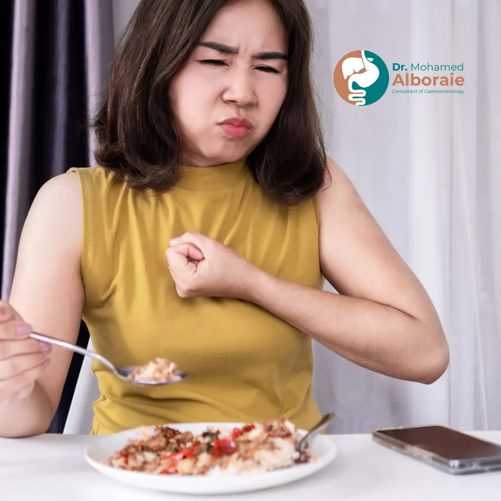 يؤدي ارتجاع الحمض من المعدة إلى المريء إلى الشعور بحرقة في الصدر، قد يؤدي هذا الألم إلى الشعور بضيق التنفس، خاصة أثناء النوم وبعد تناول وجبة دسمة.